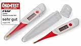Digitale Fieberthermometer sind seit Jahren zuverlässige Partner in jedem Haushalt. Das Fieberthermometer "Luxus" ist die sinnvolle Weiterentwicklung der bewährten Digital-Thermometer. Die flexible Spitze vermindert die Verletzungsgefahr und tut Ihrem Kind weniger weh als bei herkömmlichen Thermomete